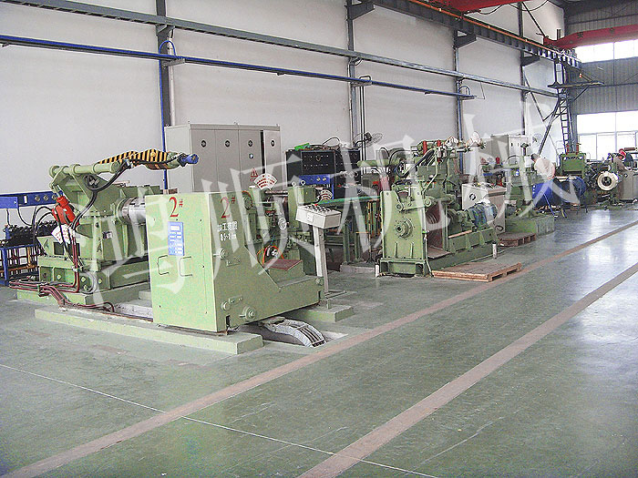 本機(jī)為多對刀片的圓盤剪切機(jī)組,由放料架、送料機(jī)、工作臺、圓盤剪切機(jī)、卷取機(jī)、電氣控制柜組合成一個機(jī)組。用于剪切中炭鋼、普炭鋼、有色金屬的20噸以下的大筒卷板料。按各種用度裁剪各種寬度的窄帶,作為焊管坯料冷軋帶鋼料及其它用途的扳帶,是目前使用進(jìn)口及國產(chǎn)大卷筒扳料必須配備的設(shè)備。